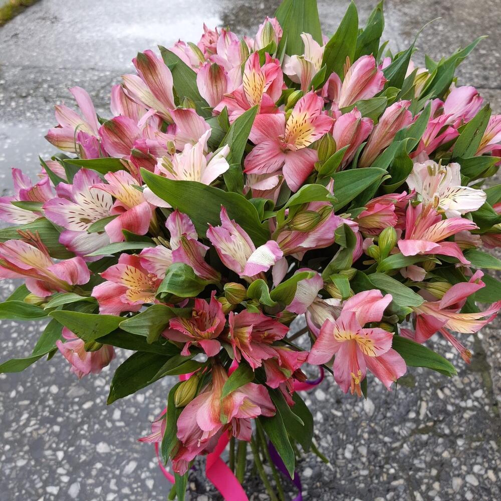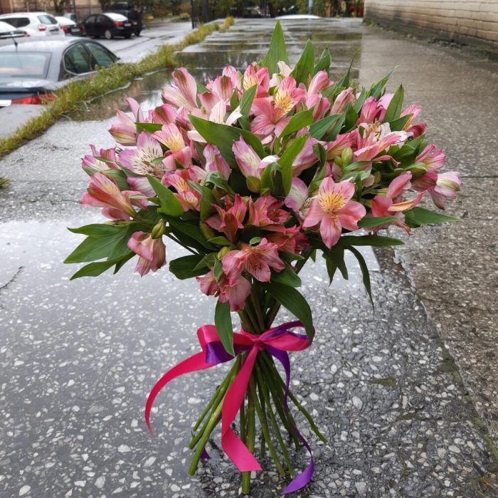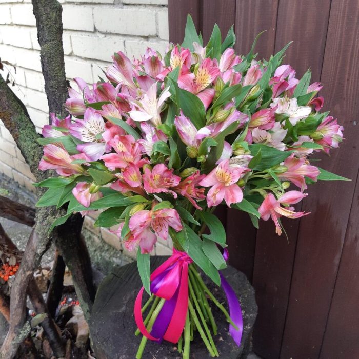 Альстромерия – 21 шт.Лента атласная – 2 шт.