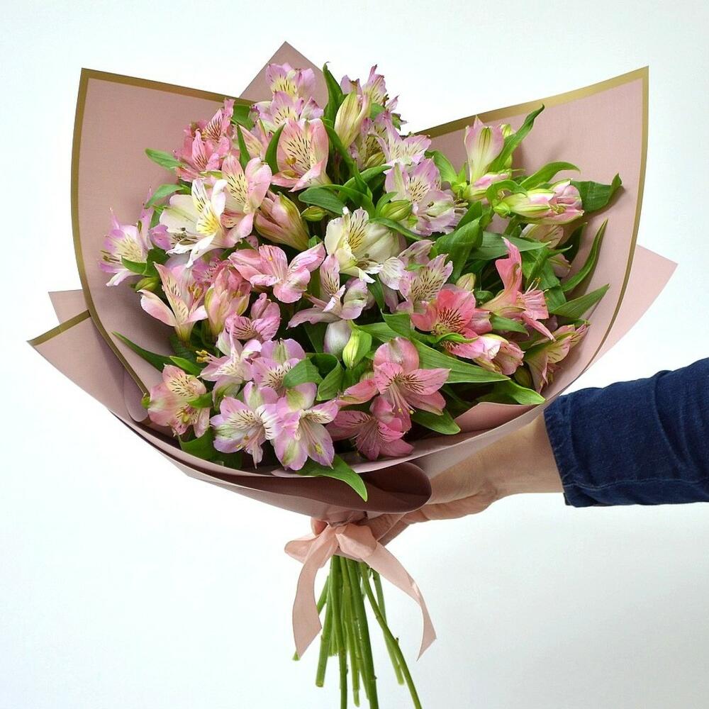 Оригинальный и красивый букет из разноцветной альстромерии в оригинальной упаковке.Размеры букета: ширина 32 см, высота 45 см.В составе букета: разноцветная альстромерия 15 веточек, оригинальная упаковка букета.