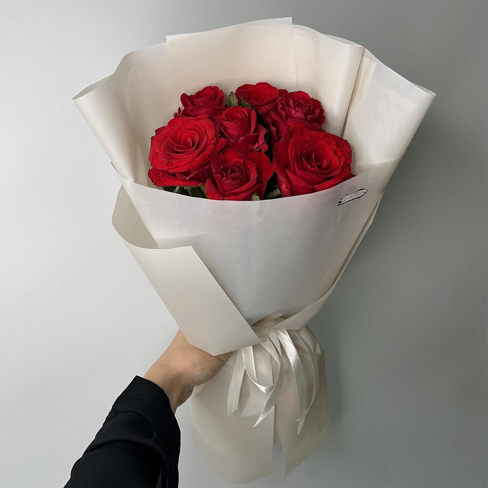 Класичний монобукет з 7 червоних троянд