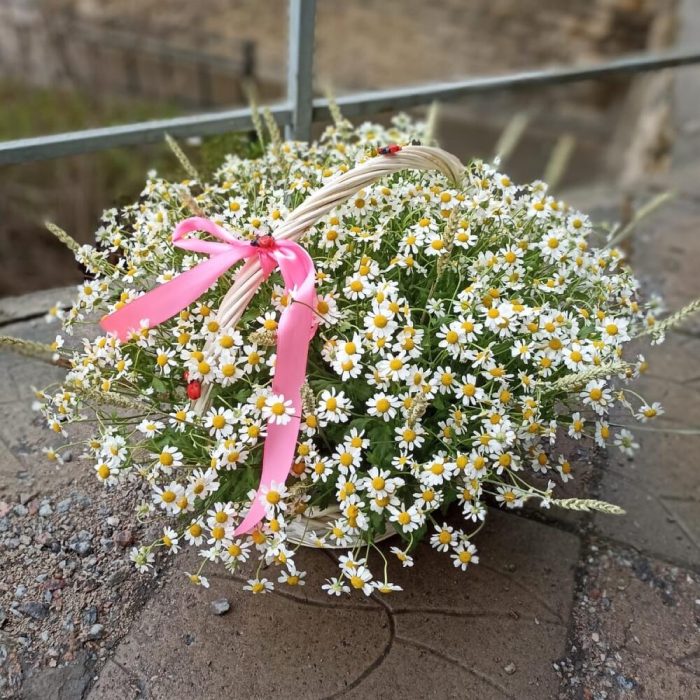 Корзина с ромашкой матрикария