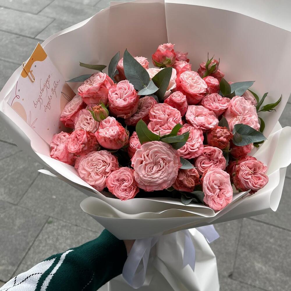 15 пионов с эвкалиптом