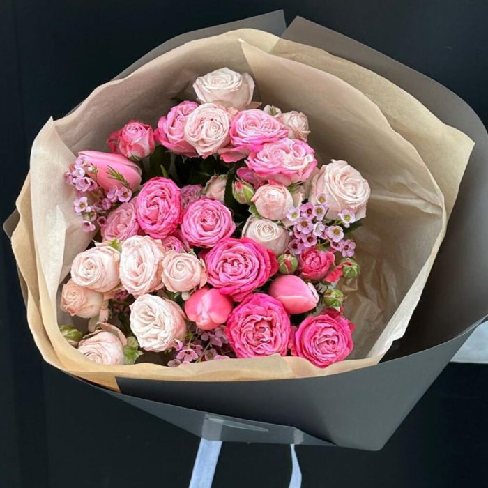 15 пионовидных кустовых роз Роял трендсеттер. Букет 310 Kimbirly Flowers