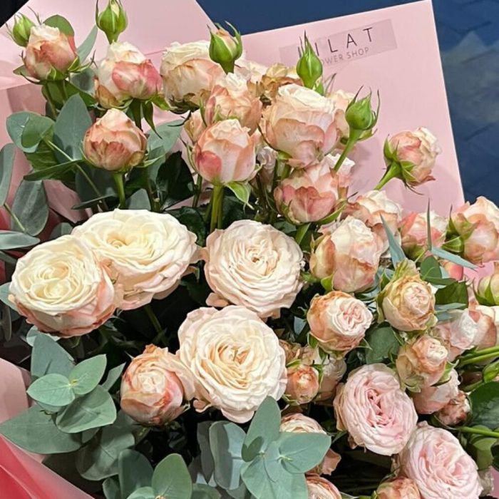 Кустовые розы, Лизиантусы, Розы, Сухоцвет