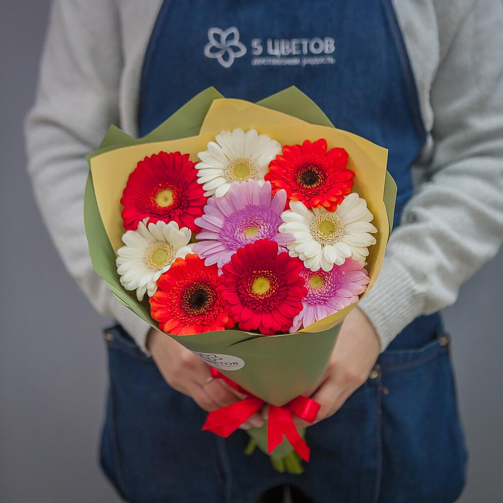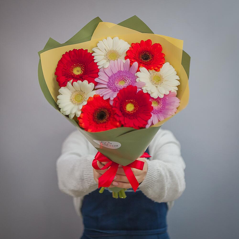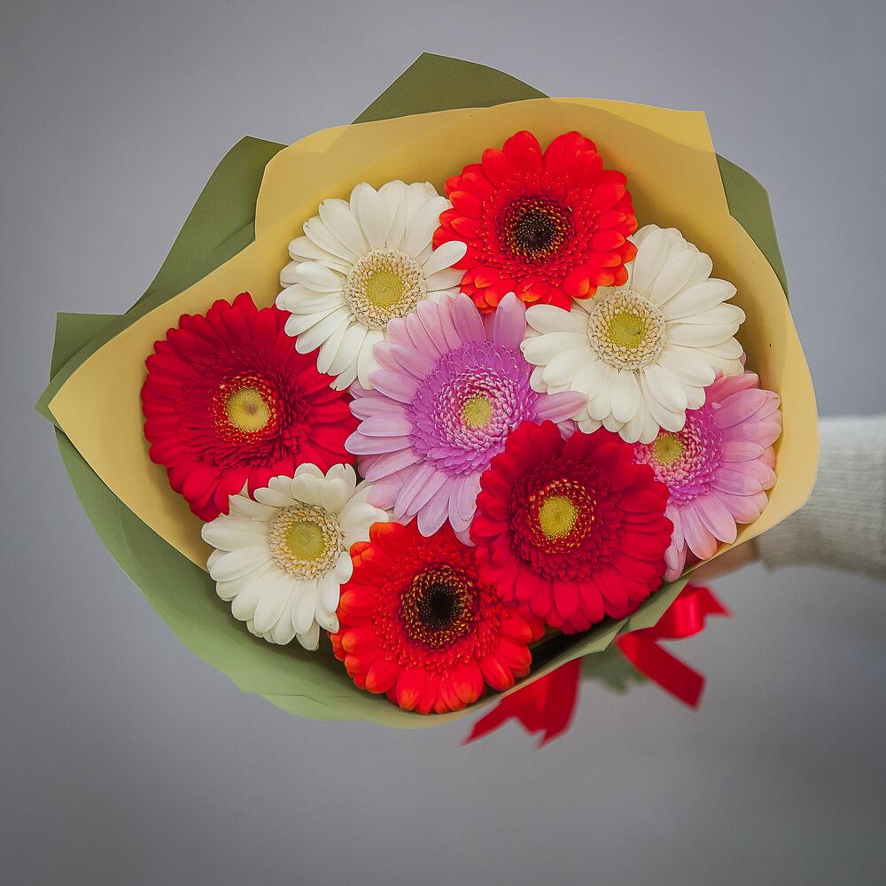 герберы разноцветные – 9 шт.