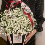 Гипсофила – 5 шт.Атласная лента – 2 шт.Оазис флористический – 1 шт.Сумочка с ручками из плотного картона ламинированого – 1 шт.
