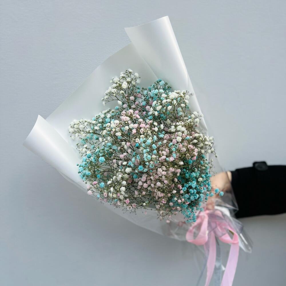 Гипсофила – 3 шт.Лента – 2 шт.Пленка прозрачная – 1 шт.