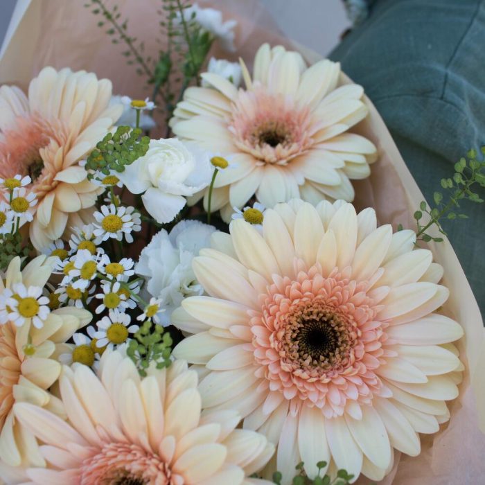 Гербера – 5 шт. Танацетум – 2 шт. диантс – 2 шт.