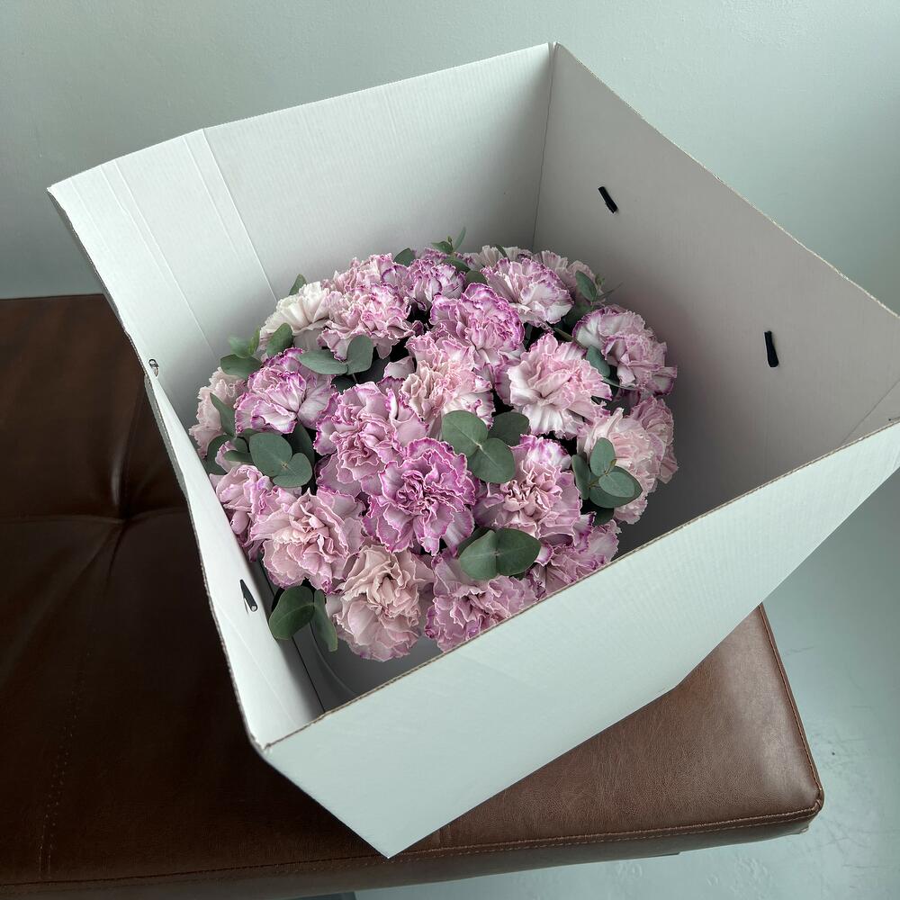 Шляпная коробка фиолетовых гвоздик (N 131)
