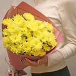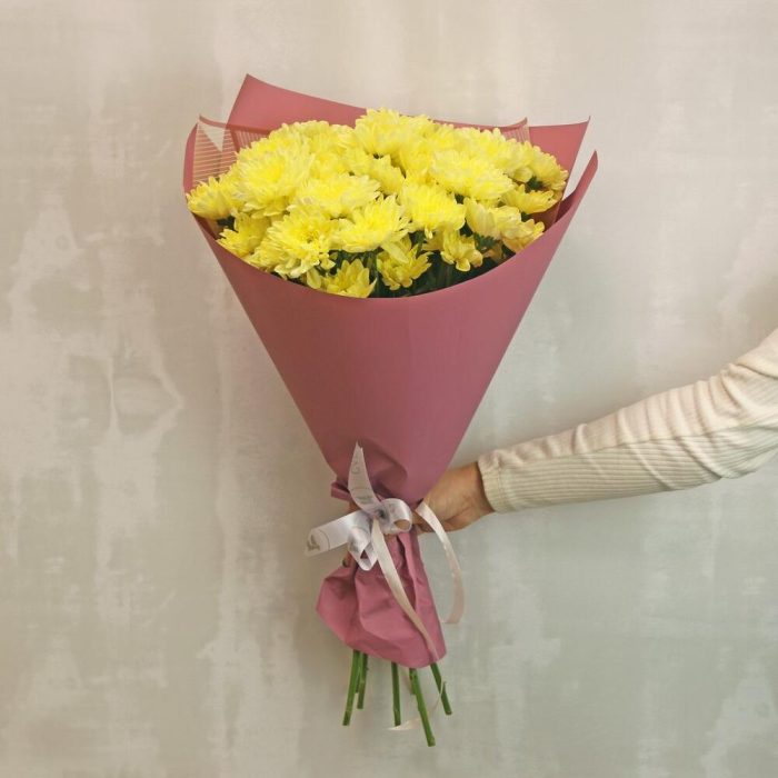 Букет из 7 желтых кустовых хризантем в стильной упаковке