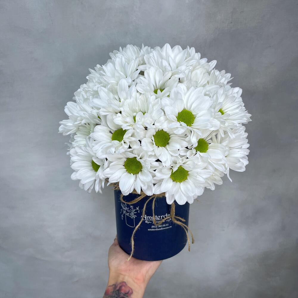 Коробка шляпная – 1 шт. Хризантема кустовая Бакарди – 7 шт. Оазис флористический – 1 шт.