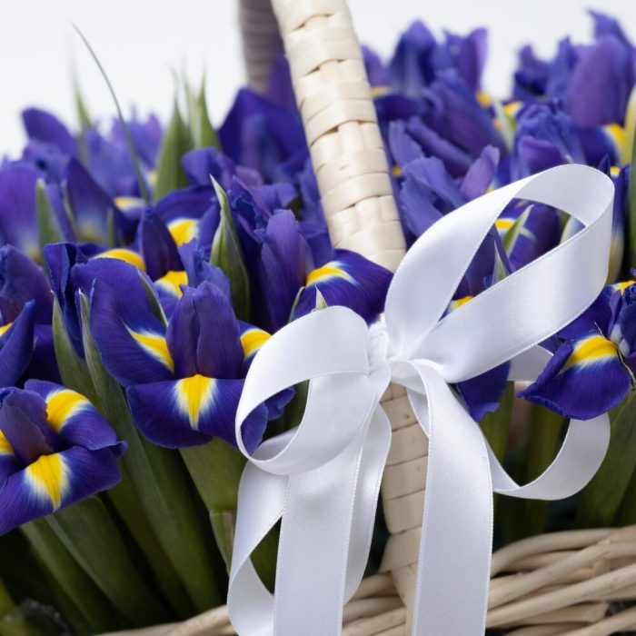 Корзина плетёная с ирисами