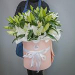 Букет из 11 белых лилий в шляпной коробке