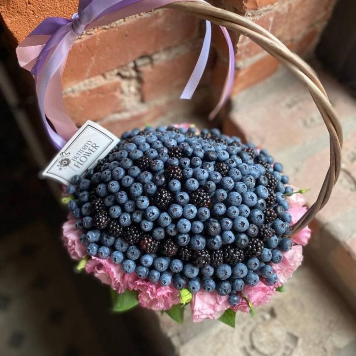 Корзинка из ягод ежевики, голубики и цветов “Лесная фея”