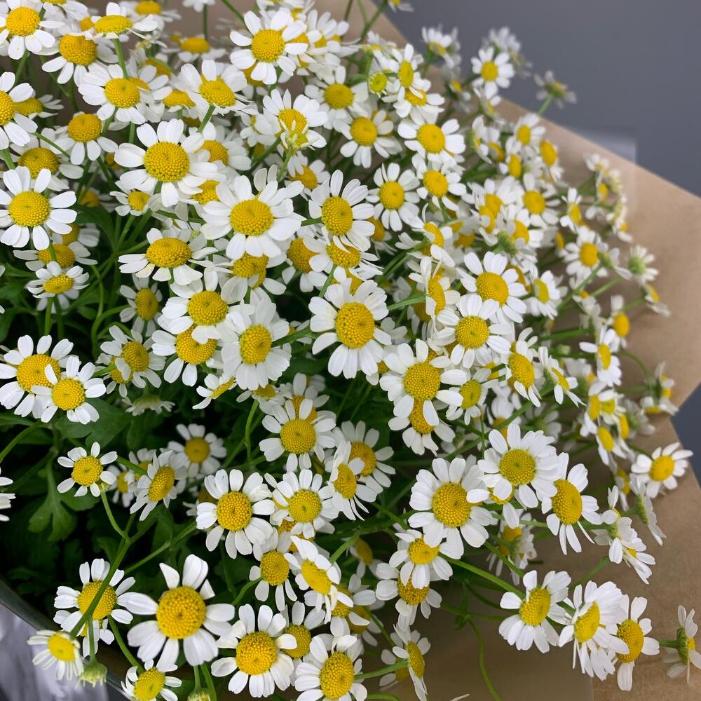 Танацетум – 7 шт.Лента атласная – 1 шт.Крафт – 1 шт.
