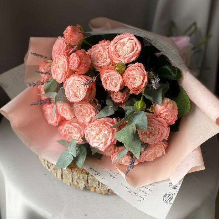 Мадам бомбастик – 13 шт. Эвкалипт – 3 шт. Упаковка дизайнерская – 2 шт. Атласная лента – 1 шт. Открыточка с вашими пожеланиями – 1 шт. доставка – 1 шт.