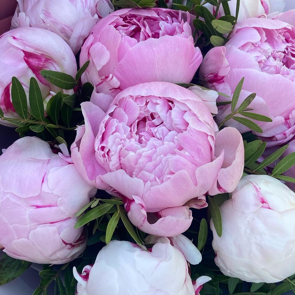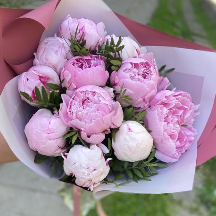 Пион – 11 шт.Писташ – 3 шт.Лента атласная – 1 шт.Упаковка дизайнерская – 3 шт.