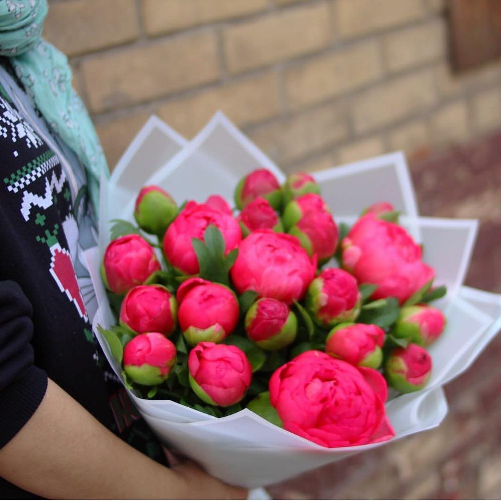 Букет из 21 пиона Корал Шарм