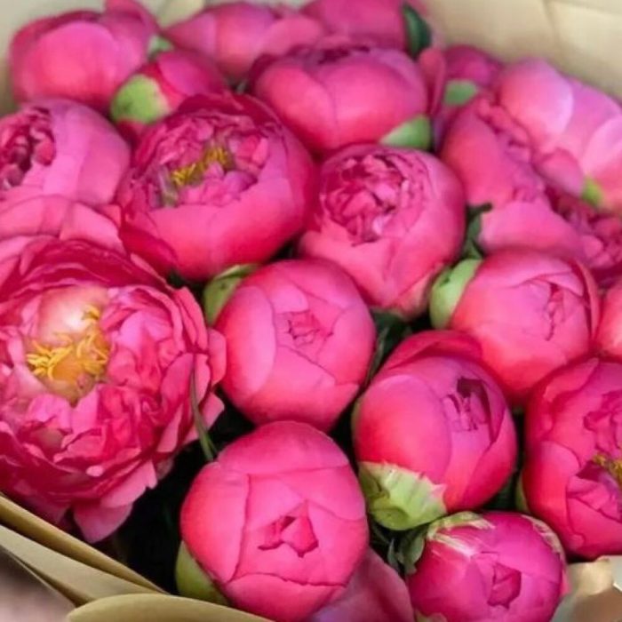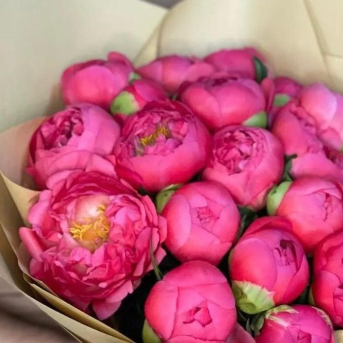 Пион – 19 шт.Упаковка дизайнерская – 1 шт.Лента атласная – 2 шт.Открыточка с вашими пожеланиями – 1 шт.хорошее настроение – 100 шт.инструкция по уходу за цветами – 1 шт.коробка переноска – 1 шт.Кризал – 1 шт.