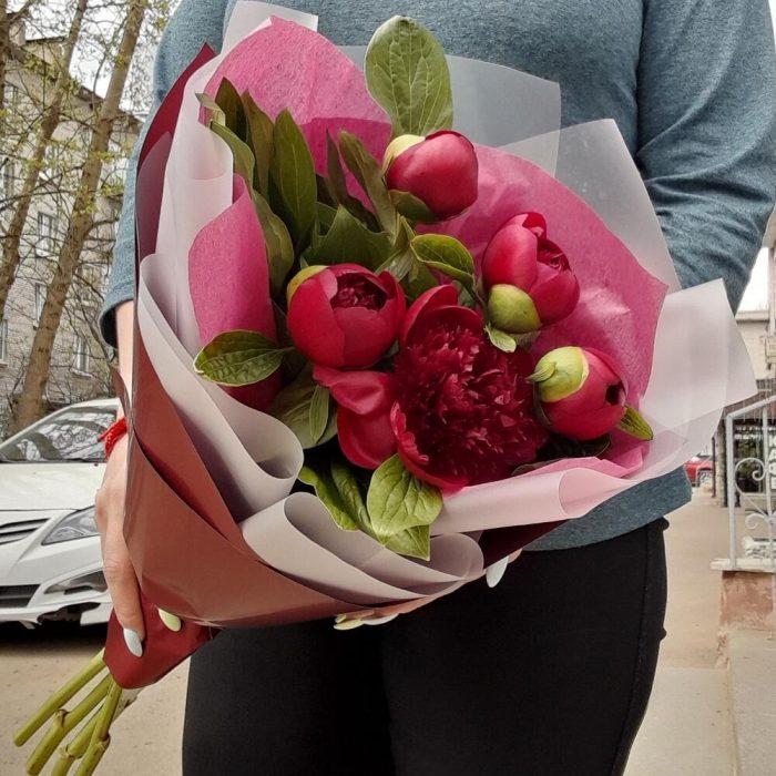 Букет вишнёвых пионов