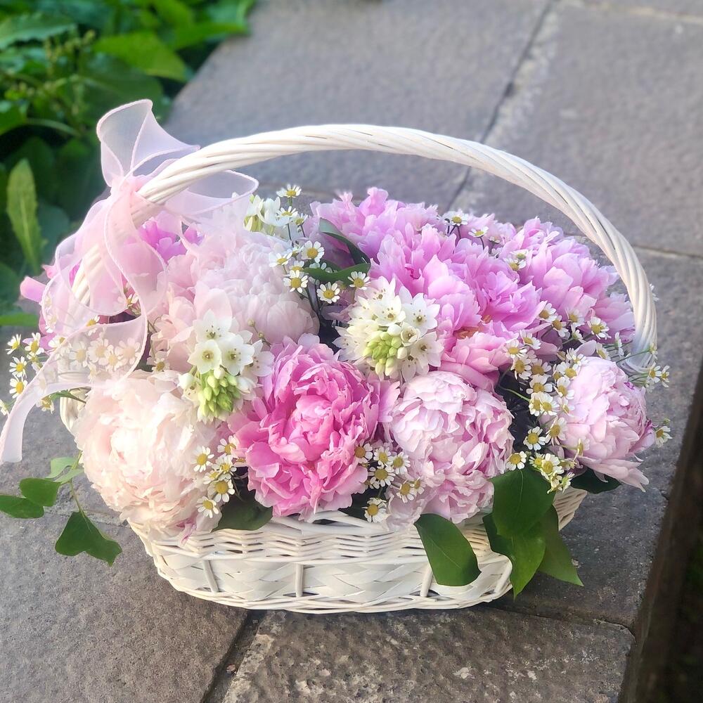 Корзина с пионами