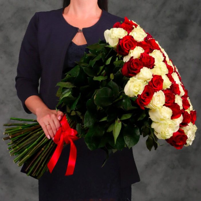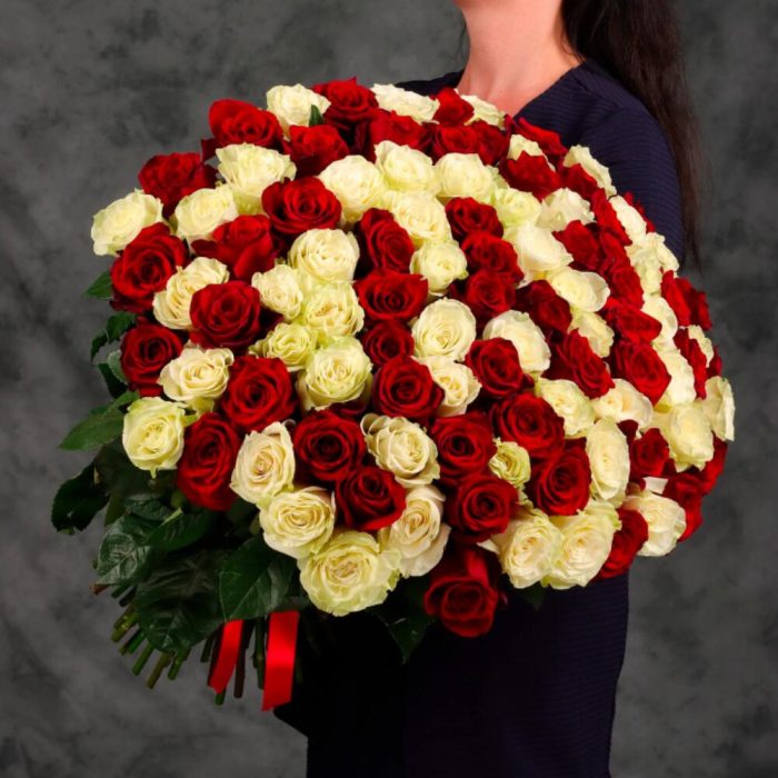 Огромный букет из 101 красной и белой.
