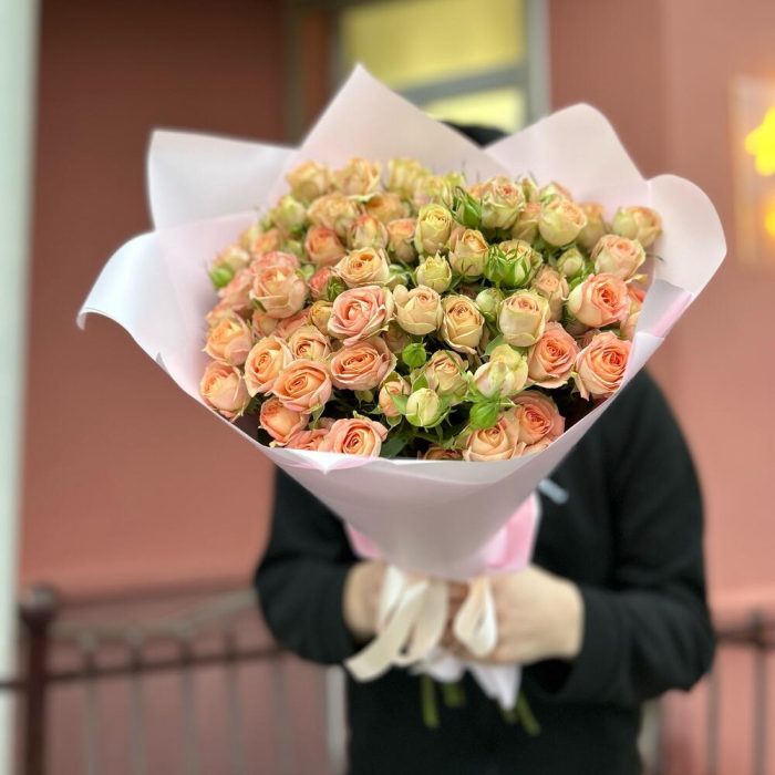 Букет из 15 кустовых веток сорта Азор . Количество бутонов (розочек) в букете может достигать 101 штуки.