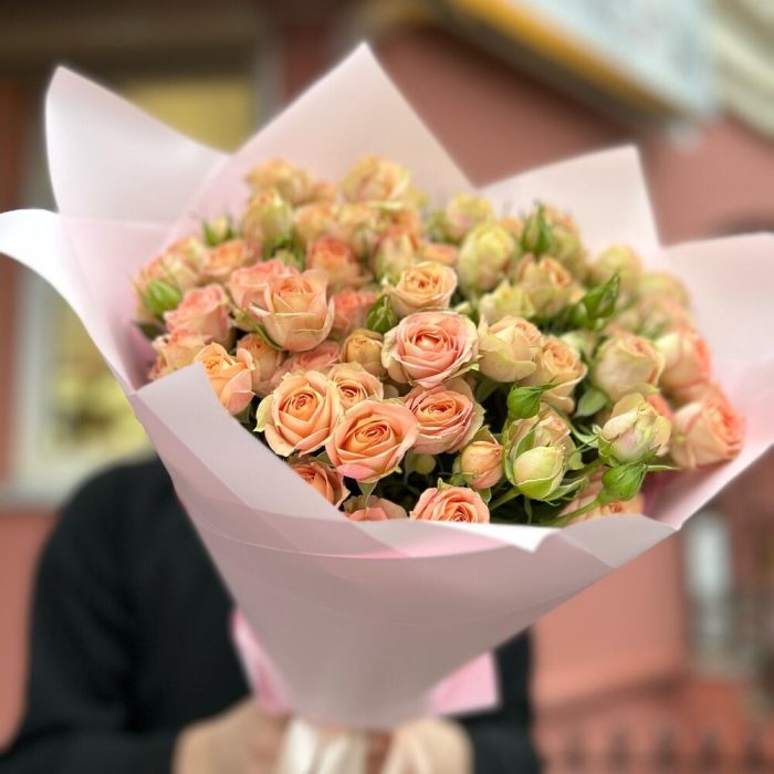 Кустовая роза – 15 шт. декоративная упаковка – 1 шт.