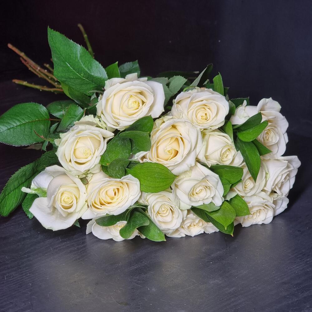 15 роз аваланш с рускусом в букете