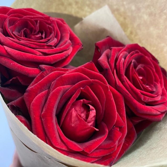 Роза красная – 3 шт.Крафт упаковка – 1 шт.Открыточка с вашими пожеланиями – 1 шт.