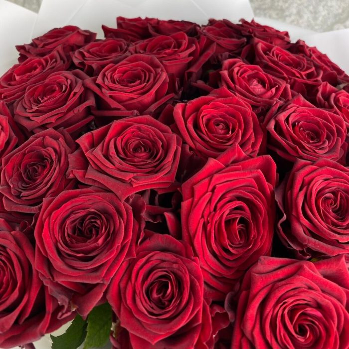 Роза 60 см – 35 шт.Упаковка – 3 шт.Атласная лента – 1 шт.