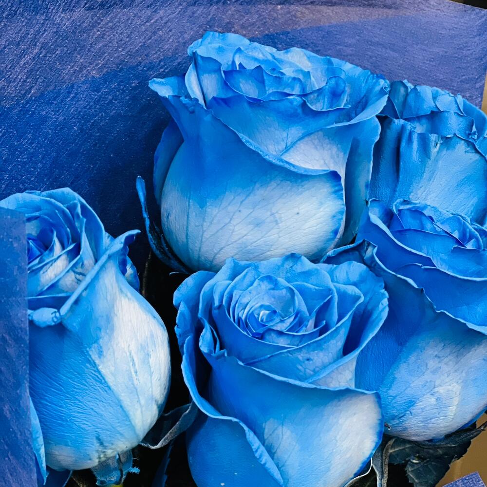 Роза синяя – 5 шт.Упаковка – 1 шт.Атласная лента – 1 шт.