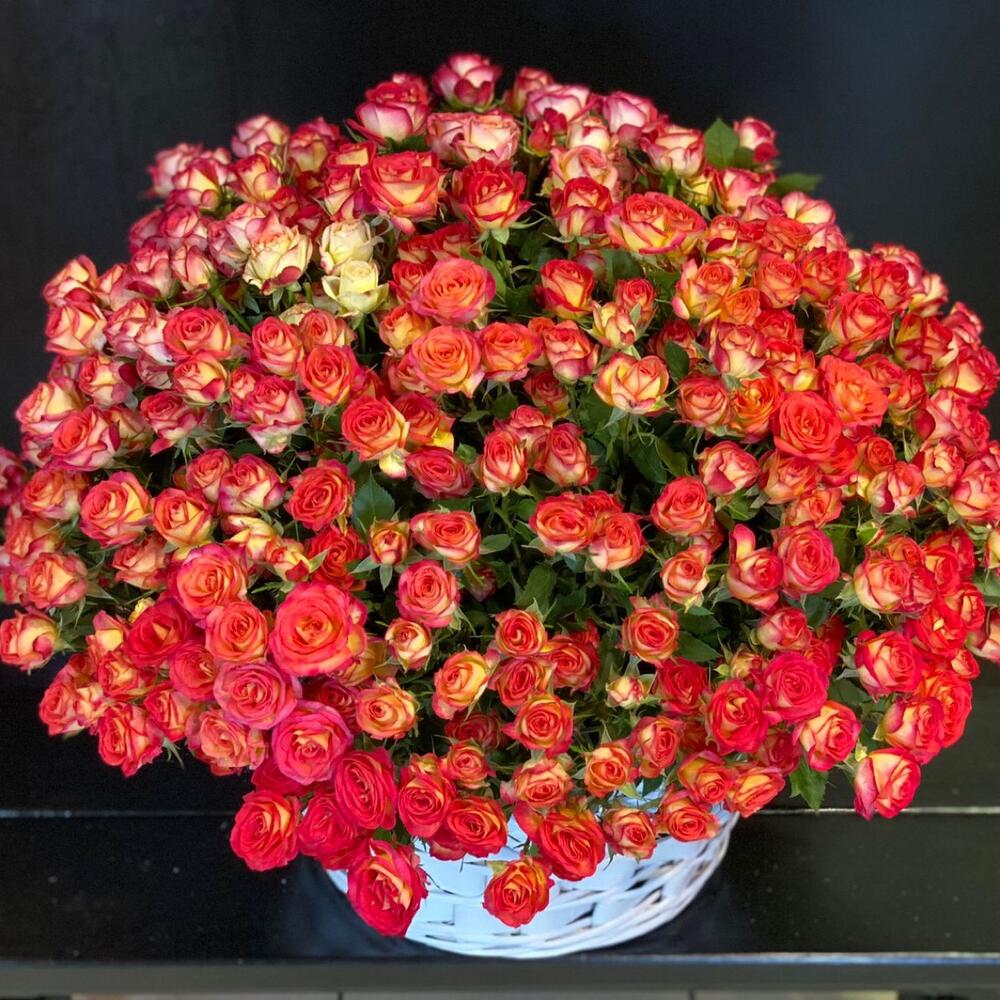 Корзина плетеная – 1 шт.Роза кустовая – 81 шт.