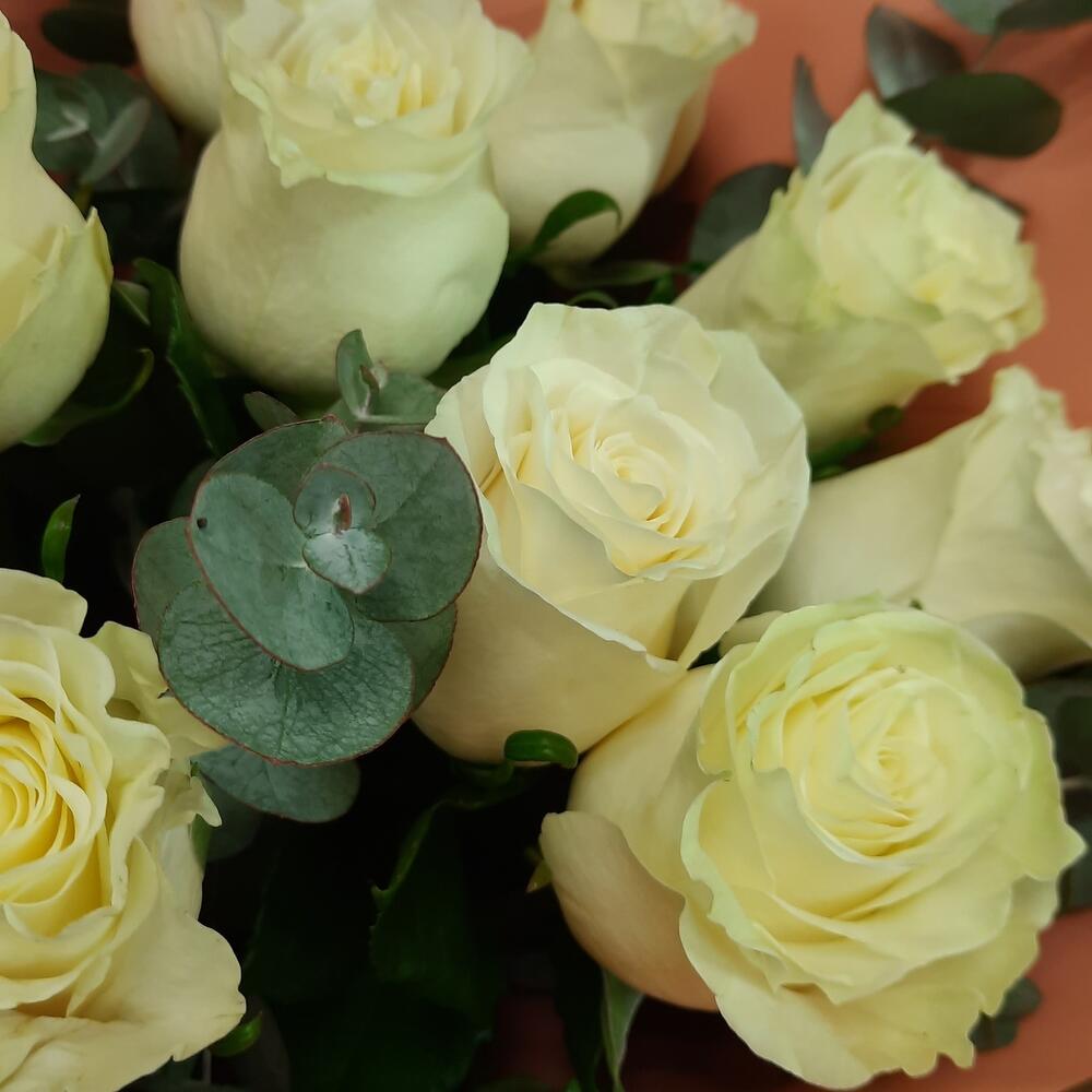 Роза mondial – 9 шт.Эвкалипт – 5 шт.Упаковка дизайнерская – 2 шт.