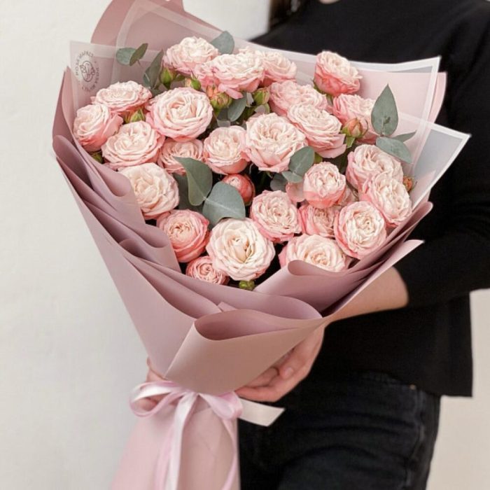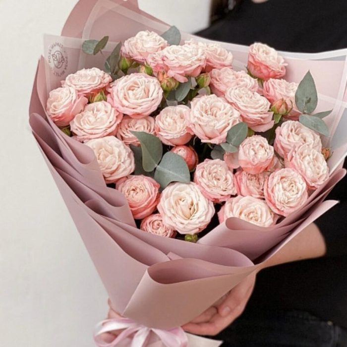 Букет из 9 розовых роз. Букет 387 ALMOND ROSES