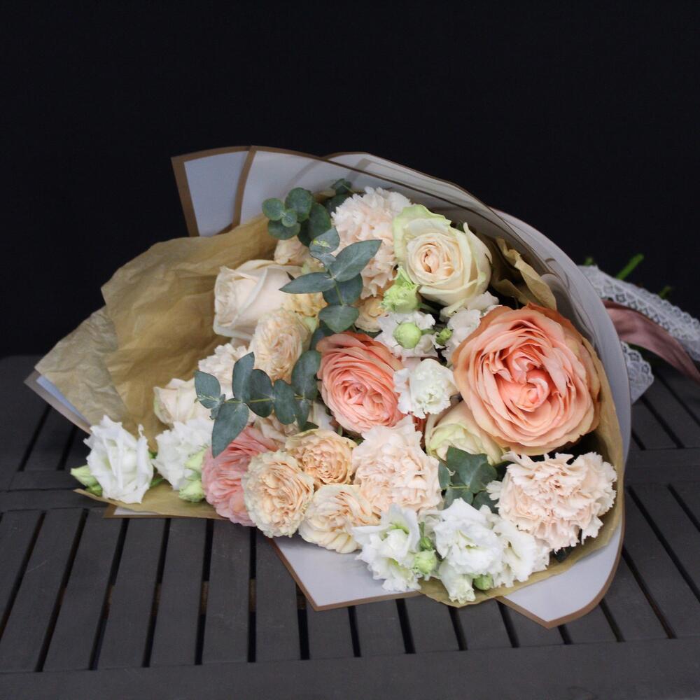 Категорий: Гвоздики, Кустовые розы, Лизиантусы, Пионовидные розы, Розы