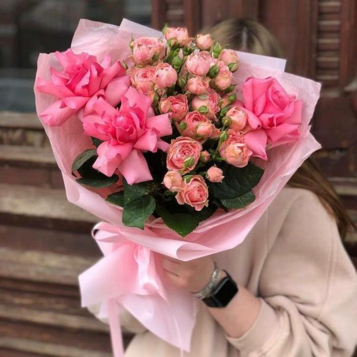 Гвоздики, Кустовые розы, Пионовидные розы, Розы