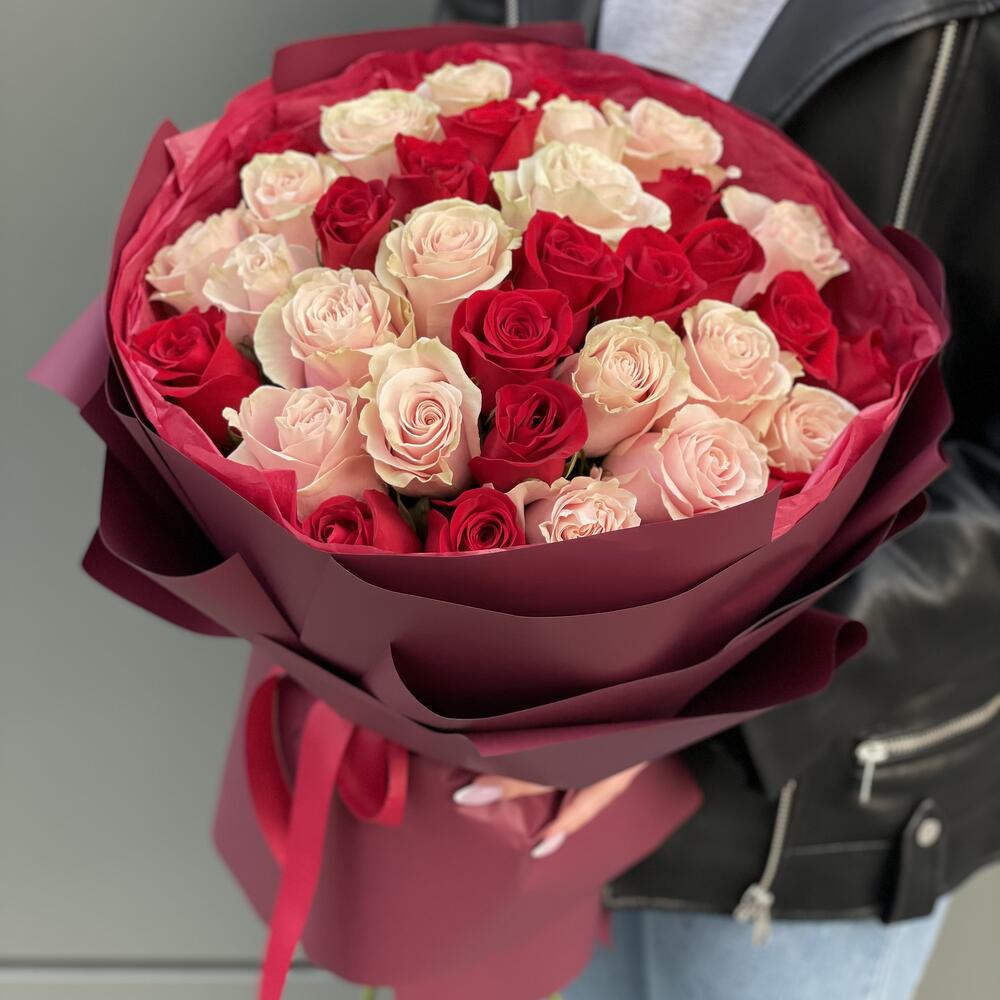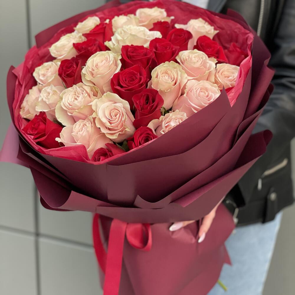 Букет из 37 роз микс (красных и розовых) в оформлении!