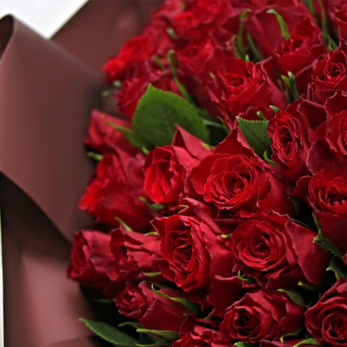 Букет из 101 красной розы 35-40 см (Кения) в стильной упаковке