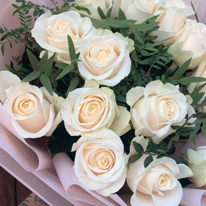 Роза – 15 шт.Эвкалипт – 3 шт.Упаковка дизайнерская – 2 шт.