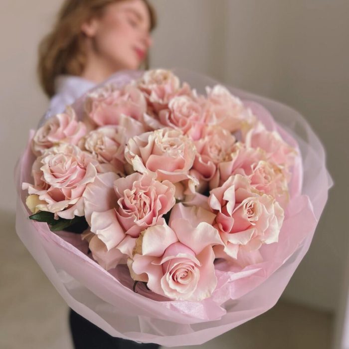 Букет из 11 пионовидных роз Пинк Мондиаль