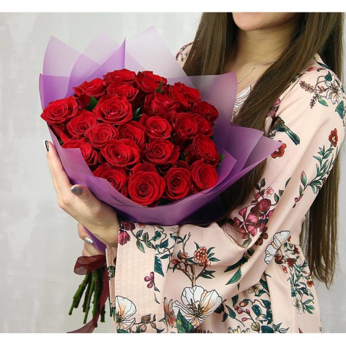 Роза Эквадор – 25 шт.Пленка – 2 шт.Лента – 1 шт.