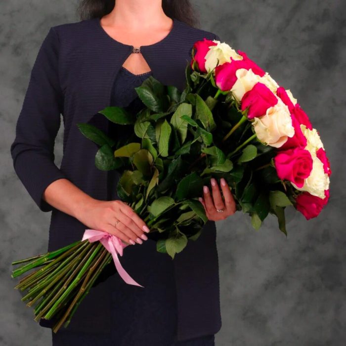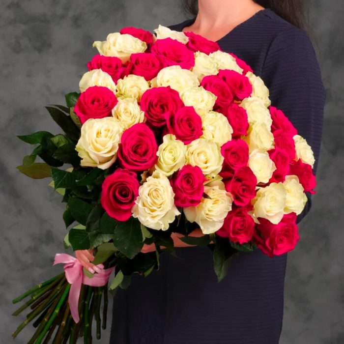 Букет 45 белых и розовых роз