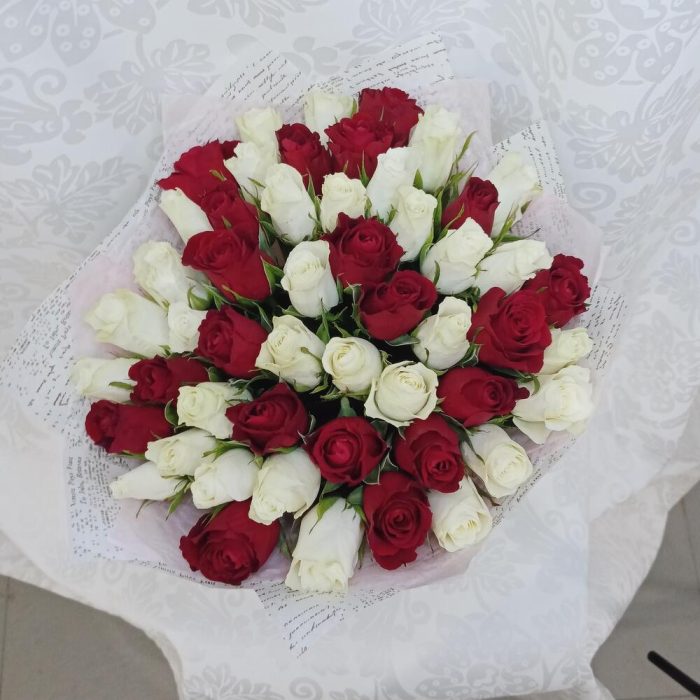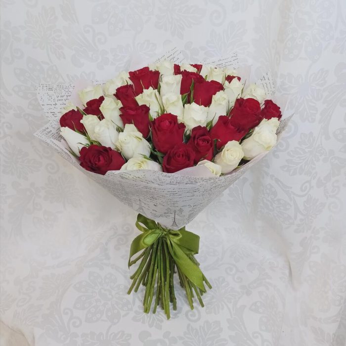 роза кения – 51 шт.Дизайнерская упаковка – 1 шт.