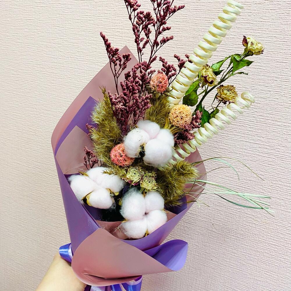 Букет из сухо цветов с хлопком