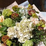 Альстромерия – 4 шт.Вибурнум – 2 шт.Гортензия – 1 шт.Лизиантус – 3 шт.Салал – 4 шт.Роза Эквадор – 1 шт.Диантус – 7 шт.Фисташка – 7 шт.Пленка дизайнерская – 3 шт.каркас ручной работы – 1 шт.Лента – 1 шт.