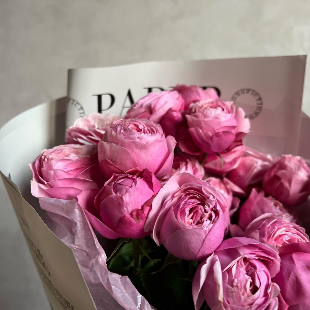пионовидная кустовая роза silva pink – 5 шт.декоративная упаковка – 1 шт.Атласная лента – 1 шт.