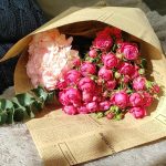 Упаковка на выбор: крафтовая газетная, крафтовая без рисунков и надписей или матовая полупрозрачная аквабумага светлых оттенков. Пропишите выбор бумаги в комментарии и мы учтём ваше пожелание. Без комментария букет будет оформлен в крафтовую газетную бумагу по умолчанию.