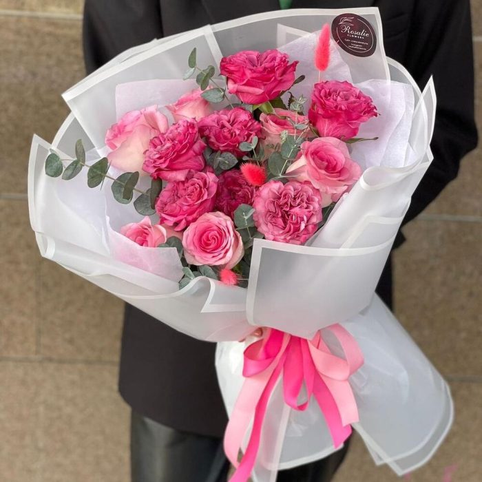 Гвоздики, Кустовые розы, Пионовидные розы, Розы