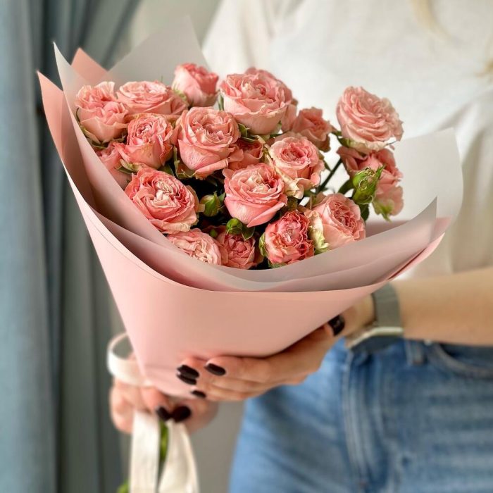 Пленка матовая – 2 шт.кустовая роза пионовидная мадам бомбастик – 5 шт.