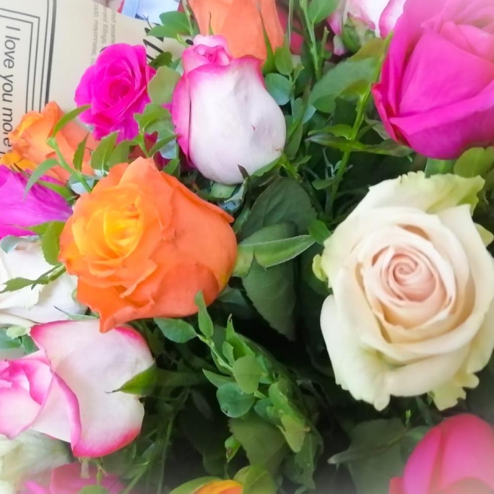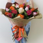 Упаковка дизайнерская – 1 шт.зелень декоративная – 6 шт.роза микс – 15 шт.